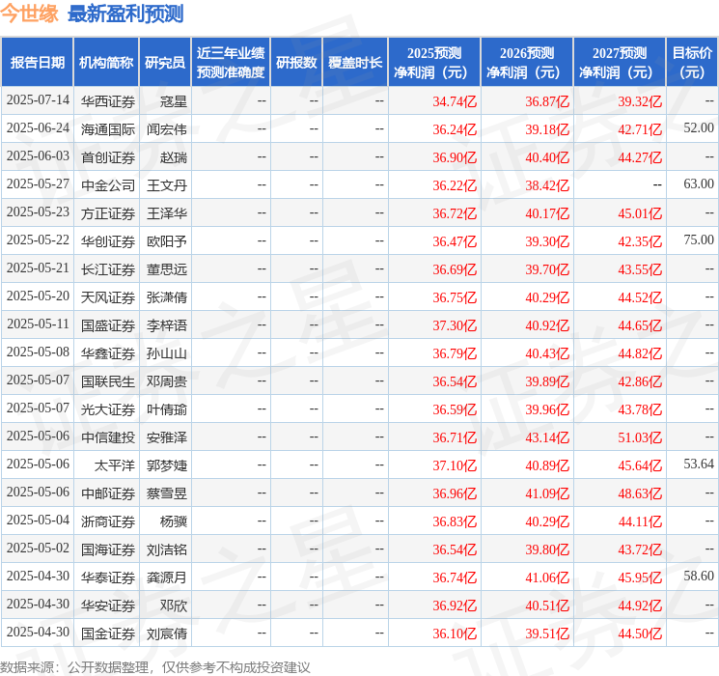最新盈利预测明细如下: