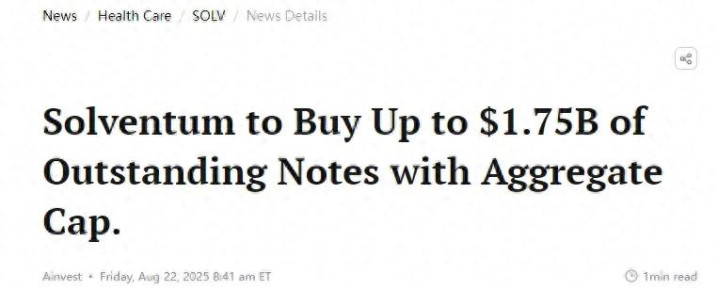 器械之家获悉配资查询114,舒万诺Solventum(纽约证券交易所代码:SOLV)近期宣布启动一项总额高达17.5亿美元(折合人民币122亿)的未偿付票据要约收购计划,旨在优化资本结构并推进其战略转型。