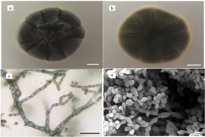 球孢枝孢菌的菌落、菌丝和孢子(并不是在核电站废墟附近发现的菌株)丨于论文